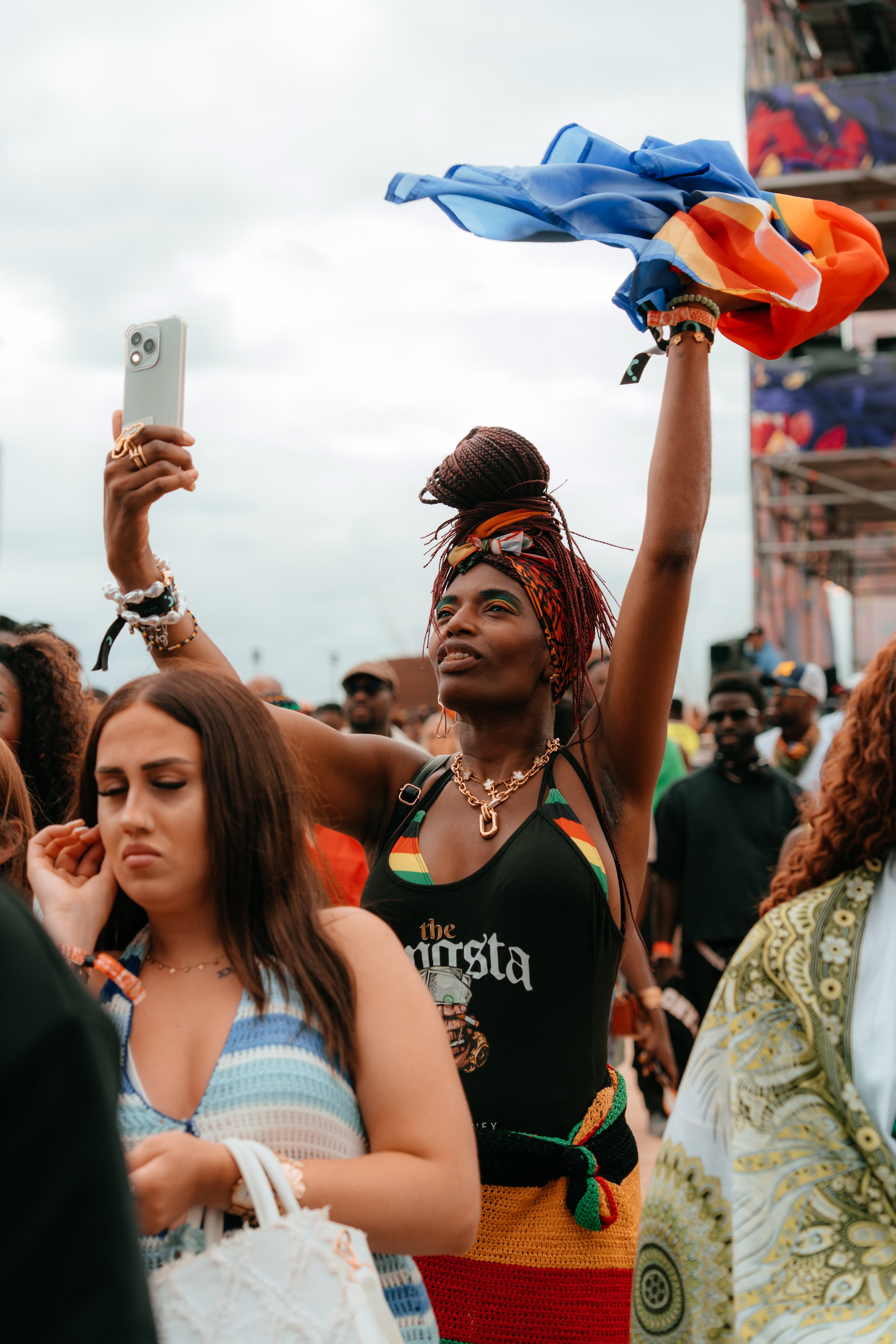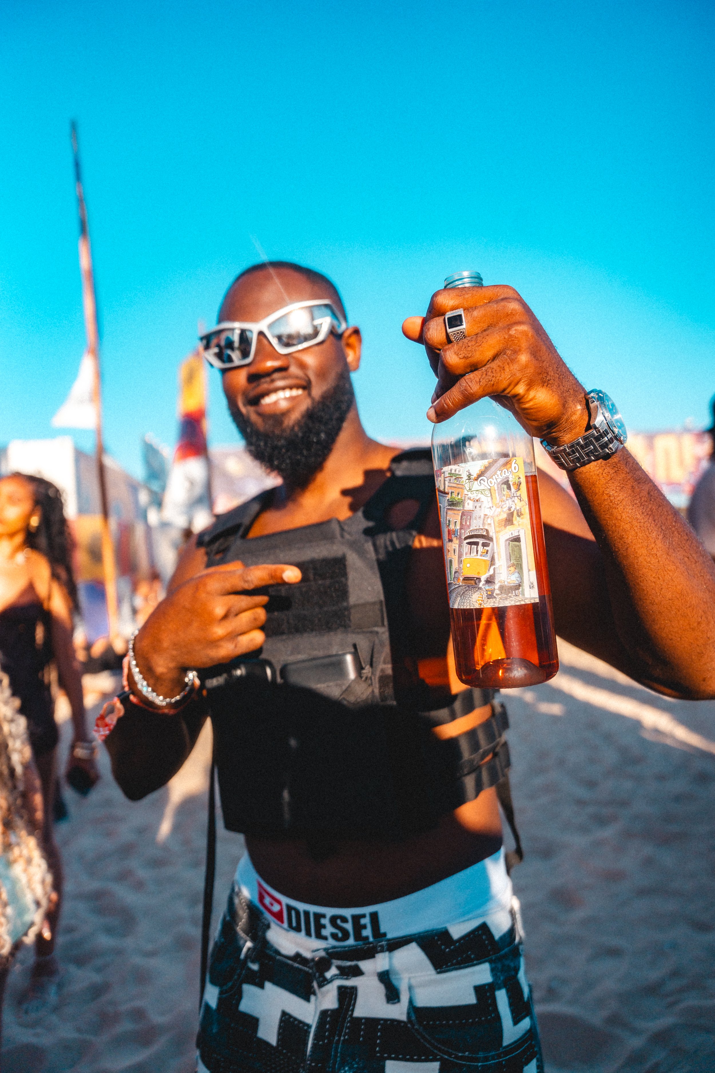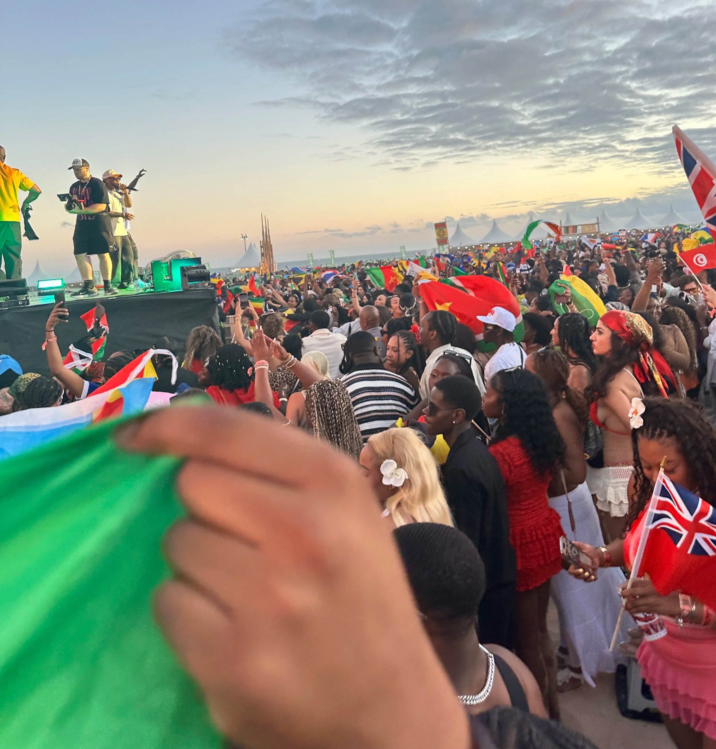 Picture this: at 4pm on 9th July 2025, the gates at Praia da Rocha (The Algarve, Portugal) beach opened for the fifth time to welcome 35,000+ attendees from all over the world to officially commence Afro Nation… 25-30 degree heat beating down on our skin, the aroma of j-rice/jerk chicken floating through the air and into our noses, sand firmly wedged in our toes, colourful flags draped around people’s necks and waists with pride (so you know without doubt where their homeland is), all against the backdrop of dreamy blue skies.