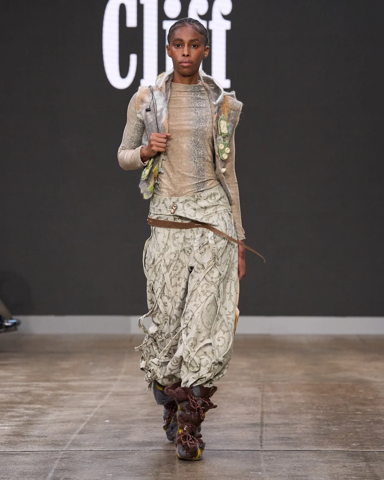 Emerging Canadian designer Allison of Dunne Cliff presented her latest collection at London Fashion Week with Global Fashion Collective, offering a thoughtful meditation on craft, philosophy, and time. Rooted in the brand’s ethos of “clothing as essay,” the collection explored the tensions between heritage and innovation, humour and history, positioning each garment as a deliberate study in balance and irresolution. Handcrafted knitwear and meticulously constructed pieces served as both narrative and medium, expressing the swing of the pendulum between opposing ideas while embracing imperfection and contemplation. Through textured forms and considered silhouettes, Allison transformed garments into wearable meditations—reflecting on technology, memory, and what could be—continuing her evolution as one of Canada’s most conceptually driven emerging voices.